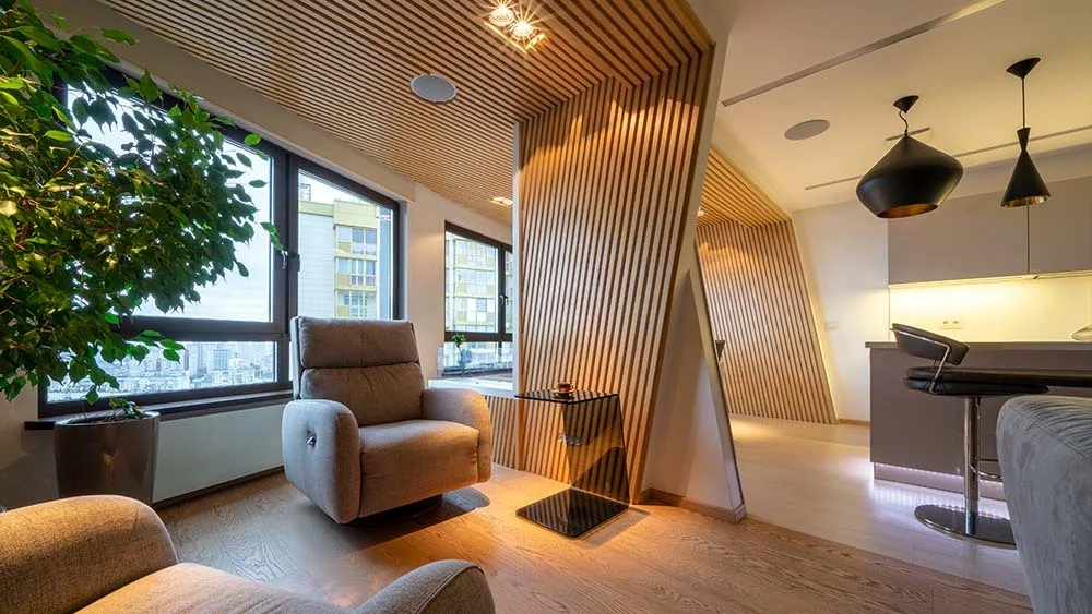 Agencement stratégique du mobilier pour optimiser chaque pièce et recoin de l'appartement, favorisant une circulation fluide.