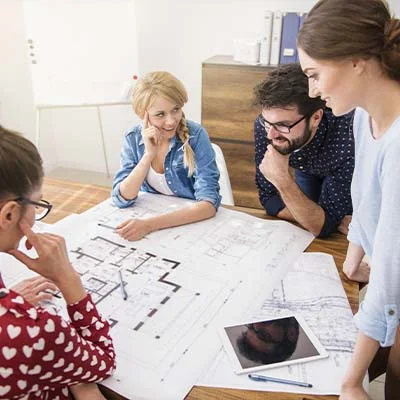 Notre équipe de designers qualifiés examine soigneusement votre espace et comprend vos besoins et vos goûts pour créer un plan de rénovation personnalisé.