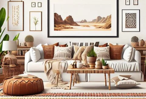 Si vous préférez un look plus bohème, nous pouvons créer un salon Bohème avec des couleurs vives, des tissus légers et des accessoires décoratifs pour une ambiance décontractée et confortable.