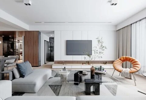 Nous pouvons créer un salon Scandinave pour vous offrir une atmosphère minimaliste et fraîche, avec des matériaux tels que le bois clair et le blanc.